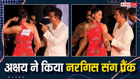 वायरल वीडियो में अक्षय कुमार इवेंट में आकर पहले नरगिस से गले मिलते हैं. हग करते हुए ही वो उनके साथ प्रैंक कर देते हैं. वो उनकी बैक पर एक पेपर लगा देते हैं जिसपर साजिद नाडियाडवाला लिखा हुआ है. जैसे ही उन्हें एहसास होता है कि अक्षय ने उनकी बैक पर कुछ लगा दिया है जोर-जोर से हंसने लगती हैं.