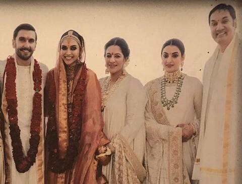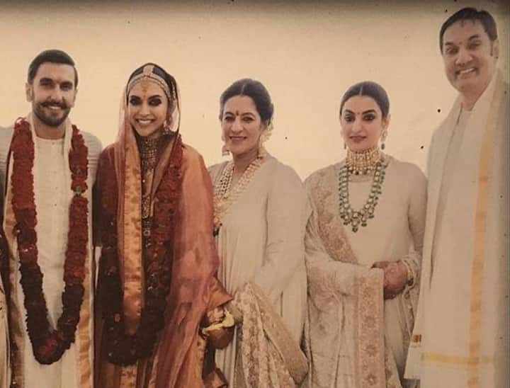 रणवीर और दीपिका इटली में शादी रचाने के बाद मुंबई वापस लौट आए हैं और अब दोनों 21 नवंबर को बेंगलुरू में होने वाले रिसेप्शन की तैयारी कर रहे हैं. दोनों ही स्टार्स ने भले ही अपनी शादी को बेहद ही सीक्रेट रखा हो, लेकिन उनकी शादी की अब कुछ इनसाइड तस्वीरें सामने आने लगी हैं. इन सब के बीच एक बेहद खास तस्वीर सामने आई है, जिसमें दीपिका पादुकोण अपनी सास यानि रणवीर की मम्मी का हाथ थामे नजर आ रही हैं. इस वायरल तस्वीर में दीपिका अपने नए परिवार यानि रणवीर के परिवार के साथ खड़ी नजर आ रही हैं. रणवीर-दीपिका की ये तस्वीर कोंकणी रस्मों रिवाज से की गई शादी के बाद की है. इसमें रणवीर और दीपिका के साथ रणवीर के पिता जगजीत सिंह भवनानी मम्मी अंजू भवनानी और बहन रितिका भवनानी भी नजर आ रही हैं. इस तस्वीर में दीपिका अपनी सास के काफी करीब नजर आ रही हैं. फोटो में आप देख सकते हैं कि किस तरह दीपिका ने सास अंजू भवनानी का हाथ थामा हुआ है.