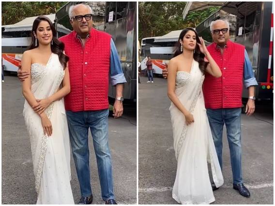 Boney Kapoor-Janhvi Kapoor: बॉलीवुड एक्ट्रेस जाह्नवी कपूर इन दिनों अपनी अपकमिंग फिल्म ‘मिली’ के प्रमोशन में बिजी हैं. वहीं फिल्ममेकर बोनी कपूर भी बेटी जाह्नवी कपूर का फिल्म प्रमोशन में पूरा सपोर्ट कर रहे हैं. हाल ही में बाप-बेटी को जोड़ी को एक साथ स्पॉट किया गया. इस दौरान जाह्नवी व्हाइट कलर की शिमरी साड़ी और ब्रालेट में बेहद खूबसूरत लग रही थीं. वहीं कैमरों के लिए पोज़ देते हुए जाह्नवी और बोनी कपूर दोनों ही पैपराज़ी के साथ मस्ती करते नजर आए. बता दें कि बोनी कपूर जब जाह्नवी के साथ फोटो क्लिक करा रहे तो इसी दौरान वे पैपराजी से मजाक में ये भी पूछ बैठे, "भाई-बहन लग रहे हैं ना ?"
