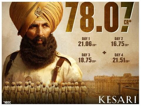 Kesari Box Office Collection Day 4: अक्षय कुमार की फिल्म केसरी दर्शकों को काफी पसंद आ रही है और इसी का नतीजा है कि रिलीज के चार दिनों में ही इस फिल्म ने कमाई के चार बड़े रिकॉर्ड बना लिए हैं.