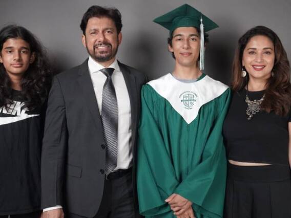 माधुरी दीक्षित ने लिखा,"राम और मेरे लिए गर्व का पल है, क्योंकि अरिन ने हाई स्कूल से ग्रैजुएट किया है. बधाई अरिन और 2021 में ग्रेजुएट हुए सभी लोगों के लिए." माधुरी दीक्षित ने इस ट्वीट में उन्होंने एक पारिवारिक तस्वीर भी शेयर की है. इसमें अरिन ग्रेजुएट यूनीफॉर्म में दिख रहे हैं, जबकि माधुरी एक काले रंग की ड्रेस में बहुत खूबसूरत लग रही हैं. अरिन के दायीं ओर उनके पिता डॉ श्रीराम नेने हैं.