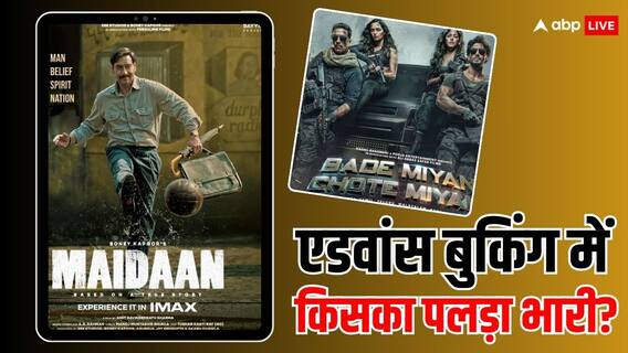 एडवांस बुकिंग में ‘बड़े मियां छोटे मिया’ से आगे है 'मैदान'फिलहाल ‘बड़े मियां छोटे मिया’ और 'मैदान' की एडवांस बुकिंग के कलेक्शन को देखते हुए अजय देवगन की फिल्म के आंकड़े के गेम में बढ़त बनाए हुए हैं. फिलहाल देखने वाली बात है कि इन फिल्मों के रिलीज होने तक ये एडवांस बुकिंग में कैसा परफॉर्म कर पाती हैं.