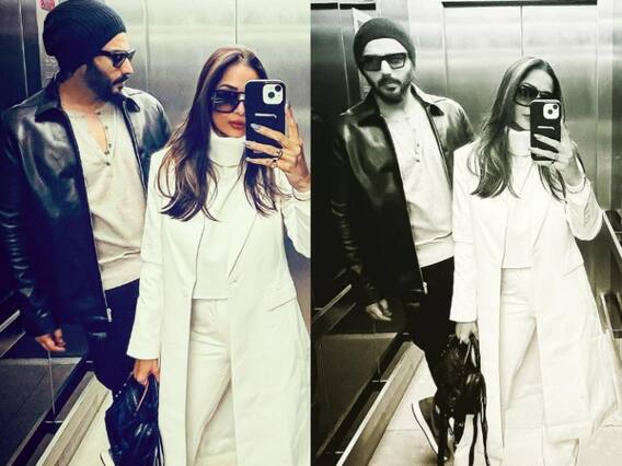 फैंस को अर्जुन कपूर और मलाइका अरोड़ा की केमिस्ट्री काफी पसंद आती है. यही वजह है कि जब भी कपल अपनी तस्वीरें सोशल मीडिया पर शेयर करते हैं तो वो पलभर में वायरल हो जाती है. अब हाल ही में अर्जुन ने अपने इंस्टाग्राम अकाउंट पर मलाइका के साथ दो तस्वीरें शेयर की हैं. जिसमें कपल लिफ्ट में लगे मिरर में सेल्फी लेते हुए नजर आ रहे हैं. इन तस्वीरों में मलाइका ऑल व्हाइट लुक में ब्लैक शेड्स के साथ काफी स्टाइलिश लग रही हैं. वहीं अर्जुन इस दौरान व्हाइट टीशर्ट के साथ ब्लैक पैंट और ब्लैक जैकेट कैरी किए हुए दिखाई दिए. इन तस्वीरों को शेयर करते हुए अर्जुन ने लिखा – ‘’ Lift Kara De !!! ‘’