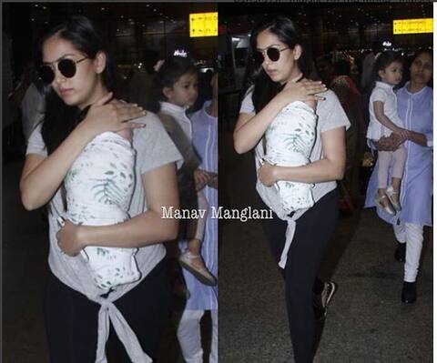 नई दिल्ली: शाहिद की पत्नी मीरा कपूर आज बेटे ज़ैन कपूर के साथ नज़र आईं. ये तस्वीर बहुत खास इसलिए है क्योंकि जैन के जन्म के बाद पहली बार उन्हें गोद में लेकर मीरा कपूर घर से बाहर दिखी हैं. मीरा कपूर की ये तस्वीरें मुंबई एयरपोर्ट पर क्लिक की गई हैं. मीरा यहां बेटे को पैपराजी से बचाती दिखीं. मीरा के साथ उनकी बड़ी बेटी मीशा भी मौजूद थी.