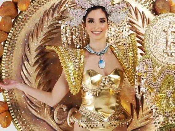 Alejendra Guajardo ने बिटकॉइन से इंस्पार्यड गोल्ड बॉडीसूट पहनकर ब्यूटी पेजेंट में रैंप पर वॉक किया. उनकी इस ड्रेस की काफी चर्चा हो रही है. सोशल मीडिया पर एलेजेंड्रा ने अपने इस लुक का वीडियो शेयर किया है, जिसे जमकर लाइक और शेयर किया जा रहा है. मालूम हो कि एल सेल्वाडोर दुनिया में पहला देश है, जिसने क्रिप्टो करेंसी को लीगल टेंडर के तौर पर अडॉप्ट किया है.