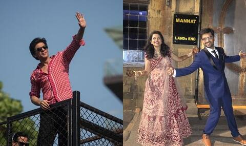 नई दिल्ली: शाहरुख खान को दुनिया भर में 'रोमांस के किंग' के तौर पर जाना जाता है. शाहरुख के साथ-साथ उनका घर 'मन्नत' भी किसी सेलिब्रिटी की तरह ही लोकप्रिय है. हाल ही में एक न्यूली वेड कपल ने इस बंगले को फिर चर्चा में ला दिया. शादी के बाद जहां नए-नवेले शादी शुदा जोड़े भगवान का आशीर्वाद लेने के लिए मंदिर जाकर माथा टेकते हैं. वहीं एक न्यूली वेड कपल शादी के बाद तुरन्त 'मन्नत' के बाहर पहुंचा और शाहरुख के सिग्नेचर स्टाइल में पोज देकर तस्वीर क्लिक कराई.
