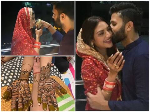 नई दिल्ली: अभिनेत्री और टीएमसी सांसद नुसरत जहां ने शादी के बाद अपना पहला करवा चौथ बहुत ही धूमधाम से मनाया है. उन्होंने इस दिन पति की लंबी उम्र के लिए व्रत रखा और रात में चांद देखने के बाद अपना व्रत खोला. नुसरत ने अपने सोशल मीडिया पर करवा चौथ की कुछ तस्वीरें पोस्ट की हैं जिनमें वो बहुत ही खूबसूरत नज़र आ रही हैं. जो तस्वीरें देखने को मिली हैं उनमें आप देख सकते हैं कि ये अभिनेत्री दुल्हन की तरह सजी धजी हैं. नुसरत ने अपने इस पहले करवा चौथ पर लाल कलर का सूट पहना. गले में मंगलसूत्र, हाथों में चूड़ा और मांग में सिंदूर के साथ नुसरत बहुत खूबसूरत नज़र आईं. सोशल मीडिया पर उनके इस करवा चौथ सेलिब्रेशन की कई तस्वीरें देखने को मिली हैं. इन तस्वीरों में उनके पति निखिल जैन उन्हें पानी पिलाते दिखे हैं. आपको बता दें कि नुसरत जहां ने इसी साल बिजनेस मैन बॉयफ्रेंड निखिल जैन संग शादी रचाई थी. उन्होंने हिंदू रीति रिवाजों के अनुसार शादी की. उन्होंने अपना धर्म परिवर्तन नहीं किया. नुसरत एक मुस्लिम परिवार से आती हैं ऐसे में इस शादी को लेकर जमकर विवाद भी हुआ.