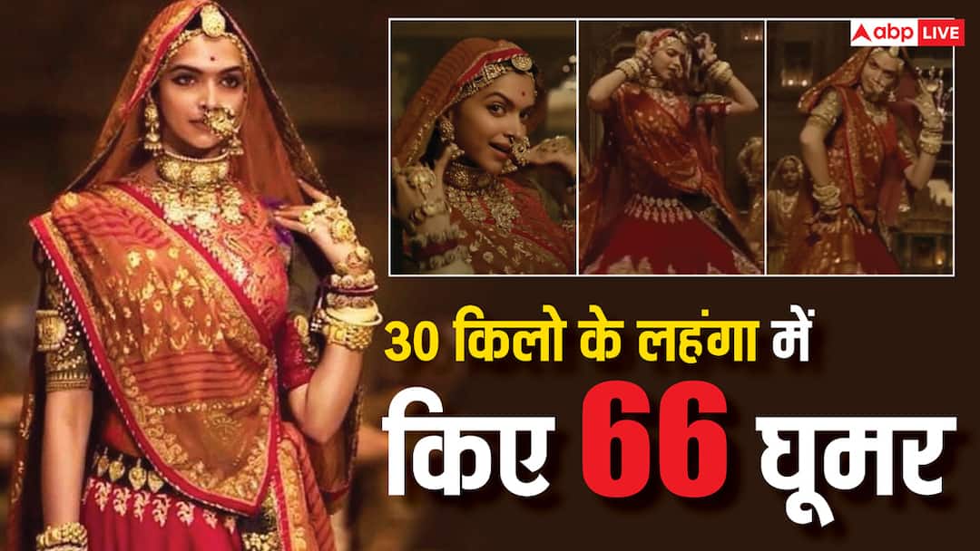 30 किलो का लहंगा पहनकर किया था डांस'घूमर' गाने को और ग्रैंड बनाने के लिए दीपिका पादुकोण को 30 किलो का लहंगा पहनकर डांस करना पड़ा था. इस लहंगे को डिजाइनर रिंपल नरूला ने तैयार किया था. इस खूबसूरत लहंगे की कीमत करीब 30 लाख रुपए थी, जिसमें भारी राजस्थानी जूलरी भी शामिल थी. इतने भारी आउटफिट और मुश्किल डांस मूव्स के बावजूद, दीपिका ने एक दिल जीत लेने वाली परफॉर्मेंस दी, जिसने दर्शकों को पूरी तरह से मोह लिया.