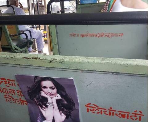 मुंबई: श्रद्धा कपूर की 'स्त्री' ने ना केवल सिनेमाघरों में अपनी जगह बनाई है बल्कि मुंबई की स्थानीय बसों पर भी स्त्री का साया देखने मिल रहा है. मुम्बई की एक बस में केवल महिलाओं के लिए आरक्षित सीटों पर श्रद्धा कपूर की स्त्री की तस्वीरें लगाई गई है. एक्ट्रेस वर्तमान में अपनी डरावनी हास्य कॉमेडी 'स्त्री' की सफलता का लुत्फ़ उठा रही है.