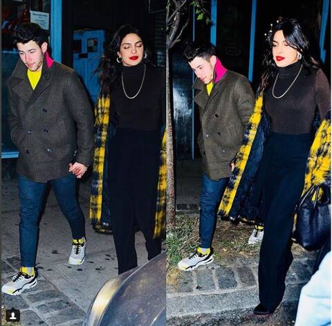 नई दिल्ली: देसी गर्ल प्रियंका चोपड़ा हमेंशा अपने फैशन और आउटफिट को लेकर सुर्खियों में रहती हैं. कल रात न्यूयॉर्क में प्रियंका चोपड़ा मंगेतर निक जोनास के साथ कैमरे में कैद हो गईं. हमेशा की तरह ये दोनों सितारे ने एक दूसरे का हाथ थामें हुए थे.