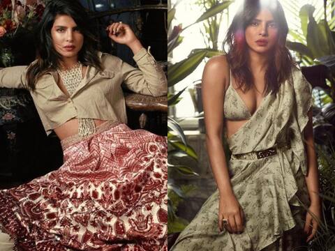 इस फोटो शूट की दो तस्वीरें और प्रियंका चोपड़ा ने शेयर की हैं. इनमें एक तस्वीर में वो साड़ी पहने नजर आ रही हैं और एक में शर्ट और लॉन्ग स्कर्ट. इन दोनों ही तस्वीरों में प्रियंका गजब की खूबसूरत लग रही हैं.