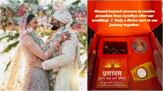 रकुलप्रीत और जैकी को मिला श्रीराम का आशीर्वाद रकुलप्रीत सिंह ने अपनी इंस्टाग्राम पर एक स्टोरी शेयर की है. इस स्टोरी में एक्ट्रेस ने अयोध्या की तरफ से आए प्रसाद की झलक फैंस के साथ शेयर की है. इसके साथ ही एक तस्वीर में एक बॉक्स दिखाई दे रहा जिसमें राम मंदिर की छोटी सी प्रतिकृति और एक चांदी का सिक्का रखा हुआ है. इसके साथ ही डिब्बे में एक किताब भी नजर आ रही है, जिसपर प्रसादम लिखा हुआ है. ये खास प्रसादम कपल को उनकी शादी की खुशी में अयोध्या से भिजवाया गया है. इस गिफ्ट को पाकर और भगवान श्रीराम से मिले इस आशीर्वाद के बाद कपल बेहद खुश है.