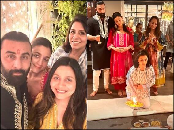 Ranbir Alia Diwali Celebration: बॉलीवुड के पावर कपल, आलिया भट्ट और रणबीर कपूर जल्द ही अपने पहले बच्चे का स्वागत करने के लिए तैयार हैं. दोनों ने इसी साल अप्रैल में शादी की थी और जून में उन्होंने अपनी प्रेग्नेंसी की घोषणा की थी. अपने बच्चे के आने से पहले, आलिया और रणबीर को परिवार के साथ शादी के बाद अपनी पहली दिवाली मनाते देखा गया.