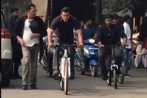 सलमान खान इन दिनों अपनी आने वाली फिल्म 'भारत' की शूटिंग में व्यस्त हैं. फिल्म की टीम इन दिनों दिल्ली में हैं और शूटिंग कर रही है. दिल्ली में हो रही इस शूटिंग की कुछ तस्वीरें और वीडियो सामने आई हैं जिनमें सलमान खान काफी रिलेक्स्ड नजर आ रहे हैं. सलमान खान दिल्ली की सड़कों पर साइकिल चलाते नजर आ रहे हैं. इतना ही नहीं साइकिल चलाते हुए वो स्टंट भी करते नजर आ रहे हैं. एक्टर अतुल अग्निहोत्री इन दिनों अपने इंस्टाग्राम अकाउंट पर फिल्म से जुड़ी कई वीडियो पोस्ट कर रहे हैं. इस वीडियो में सलमान अपनी टीम के साथ साइकलिंग करते दिख रहे हैं और वो अपनी साइकिल को ब्रेक लगाकार नहीं बल्कि चलती साइकिल से उतरकर हाथ से रोकते नजर आ रहे हैं.