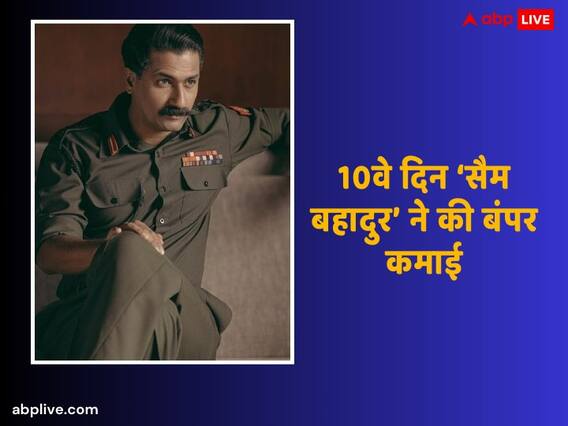 Sam Bahadur Box Office Collection Day 10: विक्की कौशल की लेटेस्ट रिलीज फिल्म ‘सैम बहादुर’ रणबीर कपूर की ‘एनिमल’ के साथ सिनेमाघरों में रिलीज़ हुई थी. जहां ‘एनिमल’ अपनी रिलीज के बाद से बॉक्स ऑफिस पर बड़े रिकॉर्ड तोड़ रही है, वहीं सैम बहादुर भी बॉक्स ऑफिस पर अपनी पकड़ मजबूत बनाए हुए है. हालांकि पहले वीकेंड के बाद ‘सैम बहादुर’ की कमाई में काफी गिरावट भी देखी गई लेकिन सेकंड वीकेंड में फिल्म की कमाई में उछाल आया और इसने 50 करोड़ का आंकड़ा पार कर लिया.चलिए यहां जानते हैं ‘सैम बहादुर’ ने रिलीज के 10वें दिन टिकट खिड़की पर कितना कलेक्शन किया है?