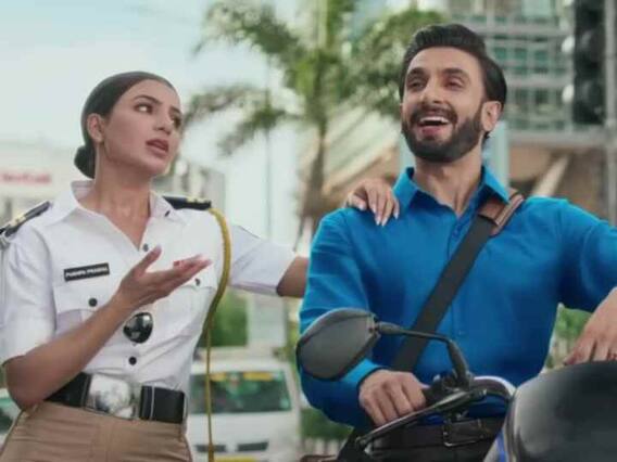 Samantha-Ranveer Singh’s Ad Film : साउथ की पॉपुलर एक्ट्रेस सामंथा रुथ प्रभु (Samantha Ruth Prabhu) करण जौहर (Karan Johar) के फेमस चैट शो 'कॉफी विद करण 7' में दिखाई दी थीं, जहां उन्होंने 'रणवीर सिंह' (Ranveer Singh) के एनर्जी लेवल की काफी तारीफ की थी. वह रणवीर की एनर्जी से काफी प्रभावित थी. अब सामंथा और रणवीर ने पहली बार स्क्रीन शेयर की है. दोनों ने एक साथ एड फिल्म (Ad Film) शूट की. इसमें सामंथा एक सख्त ट्रैफिक पुलिस के किरदार में दिखी थीं जबकि रणवीर ट्रैफिक निमयों को तोड़ने वाले बाइक राइडर की भूमिका में थे. दोनों की ये एड फिल्म अब रिलीज हो चुकी है.