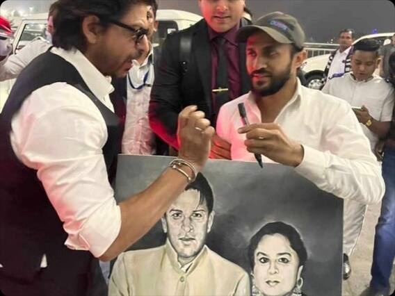 मां-बाप की पेटिंग देख चौंक गए 'पठान'शाहरुख के फैंस अपना क्रेज जाहिर करने के लिए लोग किसी भी हद तक जा सकते हैं. ऐसा ही एक उदाहरण हाल ही में देखने को मिला. एक फैन शाहरुख के दिवंगत मां-बाप की पेंटिंग लेकर खड़ा था, जैसे ही किंग खान उधर से गुजरे फोटो देखकर दंग रह गए. 'पठान (Pathaan) एक्टर ने इस पेंगिंग पर ऑटोग्राफ भी दिया.