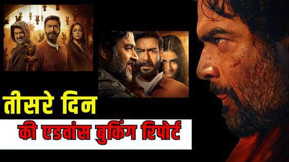 Shaitaan Third Day Advance Booking: 'शैतान' का जादू दर्शकों के सिर चढ़कर बोल रहा है. हॉरर और सस्पेंस से भरपूर अजय देवगन और आर माधवन की ये फिल्म बॉक्स ऑफिस पर अपना पूरा दबदबा बनाए हुए है. फिल्म 8 मार्च, 2024 को थिएटर्स में रिलीज हुई है और जमकर कारोबार कर रही है. ना सिर्फ थिएटर्स में बल्कि एडवांस बुकिंग में भी फिल्म का दबदबा कायम है.