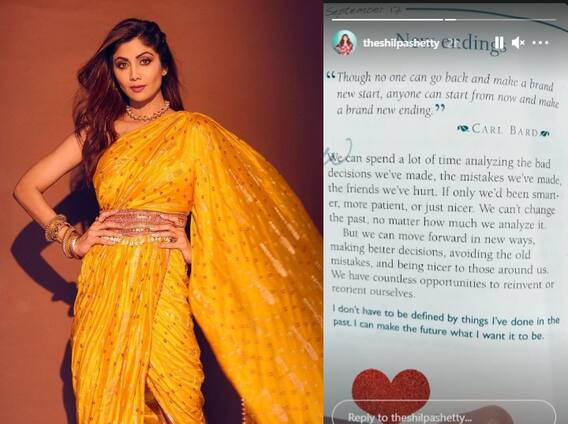 शिल्पा शेट्टी ने अपनी इंस्टाग्राम स्टोरी में लेखक 'कार्ल बर्ग' की किताब के चैप्टर 'न्यू एंडिंग्स' (New Endings) को शेयर किया है. जिसमें लिखा है कि, 'कोई भी वापस पुराने समय में जाकर एक नई शुरुआत नहीं कर सकता लेकिन कोई अभी से एक नई शुरुआत करके एक नया अंत जरूर कर सकता है" इसके आगे लिखा गया है कि "हम अपने गलत फैसलों को लेकर सोचने में बहुत ज्यादा वक्त लगा देते हैं. जो गलतियां हमने की हैं. जिन दोस्तों को हमने चोट पहुंचाई हैं. अगर हम थोड़े स्मार्ट होते, थोड़े और धैर्यवान होते, बहुत अच्छे तो भी हम अपने बीते हुए कल को बदल नहीं सकते थे. चाहे कितना भी सोच लें.'