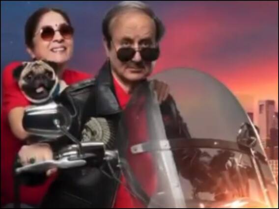 Shiv Shastri Balboa poster: बॉलीवुड के दिग्गज एक्टर अनुपम खेर और नीना गुप्ता की अपकमिंग फिल्म 'शिव शास्त्री बल्बोआ' का नया मोशन पोस्टर रिलीज हो गया है. इसमें अनुपम को एक लाल शर्ट और काले चमड़े की जैकेट के साथ डेनिम और बाइक की सवारी करते हुए दिखाया गया है. वहीं फिल्म की हीरोइन नीना गुप्ता रेड-टीशर्ट पहने हाथ में डॉगी थामे राइड का मजा लेती नजर आ रही हैं.