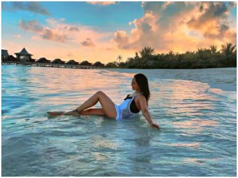 सोनाक्षी ने सोशल मीडिया पर एक तस्वीर पोस्ट करते हुए कहा कि उन्हें पानी में बेहद खुशी मिलती है. तस्वीर में सोनाक्षी को व्हाइट कलर के टॉप में मालदीव के बीच पर देखा जा सकता है. उनके पीछे तस्वीर में सनसेट का बेहद खूबसूरत नजारा भी देखने को मिल रहा है. जिसे उनके फैंस काफी पसंद कर रहे हैं. इस तस्वीर को अभी तक 2 लाख 50 हजार से ज्यादा लाइक मिल चुके हैं.