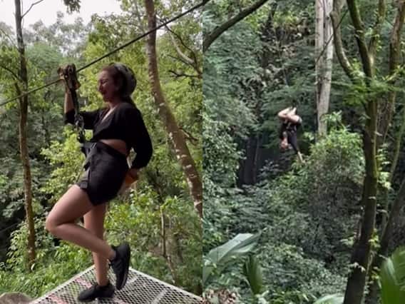 वीडियो में दिखाई देता है जब सोनाक्षी वैली क्रॉसिंग (जिप लाइन) के लिए तैयार होती हैं इसके लिए वो काफी एक्साइटेड दिखती हैं. इसी एक्साइटमेंट में वो जोर से खुद को पीछे की तरफ पुश करती हैं तो उन्हें बैक पर हिट हो जाता है. इस दौरान वीडियो बनाने वाला भी जोर जोर से हंसने लगता है और सोनाक्षी भी इंबैरेस होकर हंसने लगती हैं. इस वीडियो को शेयर करते हुए एक्ट्रेस ने फनी कैप्शन दिया. सोनाक्षी ने लिखा- 'ही ही ही थोड़ी सी लगी स्पाइडर गर्ल'. वीडियो में आगे दिखाई देता है जब सोनाक्षी मिडवे में पहुंच जाती हैं तो वे स्पाइडर मैन की तरह पोज करती दिखती हैं.