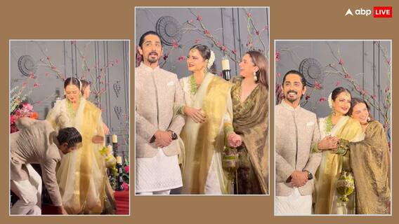 Sonakshi- Zaheer Wedding: बीते दिन सोनाक्षी सिन्हा और जहीर इकबाल ने सिविल सेरेमनी में शादी करने के बाद ग्रैंड रिसेप्शन पार्टी होस्ट की थी. न्यूली वेड कपल की रिसेप्शन पार्टी में सलमान खान से लेकर रेखा, काजोल, तब्बू, ऋचा चड्ढा, अदिति हैदरी, विद्या बालन और संजय लीला भंसाली समेत तमाम बॉलीवुड सेलेब्स पहुंचे थे. इस दौरान एक वीडियो सोशल मीडिया पर खूब वायरल हो रहा है जिसमें हीरामंडी की बिब्बोजान यानी अदिति राव हैदरी और उनके मंगेतर और एक्टर सिद्धार्थ दिग्गज अभिनेत्री रेखा के साथ पोज देते नजर आ रहे हैं. इस दौरान सिद्धार्थ रेखा के पैर छूकर आशीर्वाद भी लेते हैं.