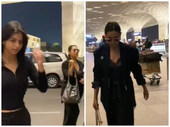ऑल ब्लैक लुक में स्पॉट हुई सुहाना और गौरीसोशल मीडिया पर वायरल हो रहे वीडियो में सुहाना और गौरी खान एयरपोर्ट पर नजर आ रही हैं. इस दौरान सुहाना ब्लैक कलर के टॉप और पैंट के साथ मैचिंग शूज में काफी अट्रैक्टिव लग रही थीं तो वहीं गौरी ने ब्लैक जीप नेक ड्रेस के साथ मैचिंग जैकेट कैरी की थी. उन्होंने ग्लोइंग मेकअप और बालों का बन बनाया हुआ था.