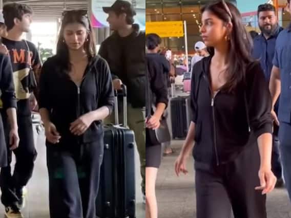 Suhana Khan At Airport: सुहाना खान की मोस्ट अवेटेड डेब्यू फिल्म 'द आर्चीज' को टीजर रिलीज हो चुका है. इसे नेटफ्लिक्स के इवेंट टुडुम में रिलीज किया गया. सुहाना के अलावा इस इवेंट में खुशी कपूर, अगस्त्य नंदा भी शामिल हुए थे. अब इस फिल्म की पूरी स्टारकास्ट अपने घर वापस आ गई है. 20 जून को सभी को एयरपोर्ट पर स्पॉट किया गया. इस दौरान शाहरुख खान की लाडली सुहाना काफी सादगी भरे अंदाज में नजर आईं. ब्राजील से वापस लौटीं सुहाना खानसुहाना खान टुडुम इवेंट अटेंड करने के बाद वापस घर लौट आई हैं. हाल ही में उन्हें एयरपोर्ट पर स्पॉट किया गया. इस दौरान सुहाना कंफर्ट ट्रेकसूट में नजर आईं. इसके साथ उन्होंने कंफर्टेबल शूज पेयर किए हुए थे. साथ ही अपने लुक को कंप्लीट करने के लिए उन्होंने सनग्लासेस कैरी किए. इस दौरान सुहाना के साथ उनकी अपकमिंग फिल्म 'आर्चीज' के को-स्टार खुशी कपूर और अगस्तय नंदा भी नजर आए. खुशी कपूर पर्पल ट्रेक सूट में स्पॉट की गईं. वहीं अगस्त्य नंदा ने व्हाइट टी शर्ट और ब्लू जींस के साथ जैकेट कैरी किया था.