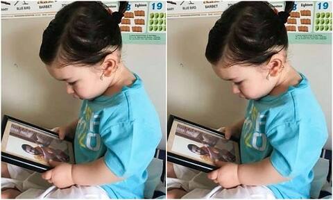 नई दिल्ली: बॉलीवुड के सबसे लोकप्रिय स्टार किड करीना कपूर और सैफ अली खान के बेटे तैमूर अली खान की तस्वीरों का फैंस को काफी बेसब्री से इंतजार रहता है. एक बार फिर से अपनी क्यूटनेस और नवाबी स्वैग को लेकर तैमूर ने सोशल मीडिया यूजर्स का ध्यान अपनी ओर आकर्षित कर लिया है. तैमूर की जो तस्वीर सोशल मीडिया पर वायरल हो रही है उसमें उन्होंने पापा सैफ अली खान की एक तस्वीर हाथ में पकड़ी हुई है और बहुत ही प्यार से उसे निहार रहे हैं.