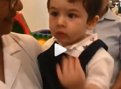 वीडियो में नजर आ रहा है कि म्यूजिक की बीट्स पर तैमूर अपना हाथ हिला रहे हैं. छोटे नवाब का ये पहला डांस स्टेप सोशल मीडिया पर जमकर वायरल हो रहा है. आपको बता दें कि इस बर्थडे पार्टी में कई स्टार किड्स शामिल हुए थे. करण जौहर अपने बच्चों यश और रूही के साथ यहां पहुंचे थे.