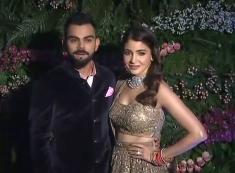 गोल्डन ड्रेस, हाथों में लाल चूड़ा और विराट की बाहों में बाहें डाले पहुंची अनुष्का