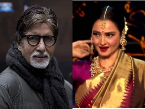बॉलीवुड एक्ट्रेस रेखा अक्सर अपने अनोखे अंदाज के लिए सुर्खियों में बनी रहती हैं. भले ही वह लंबे समय से फिल्मों से दूर हों लेकिन फैंस के बीच उनका स्टारडम आज भी वैसा ही है. रेखा के चाहने वाले फैंस करोड़ों में हैं. वे रेखा की एक झलक पाने को बेताब रहते हैं. रेखा भी सोशल मीडिया के माध्यम से समय समय पर फैंस के साथ एक्सपीरिएंस शेयर करती रहती हैं. हाल ही में रेखा का एक वीडियो बहुत तेजी से वायरल हो रहा है. इस वीडियो में रेखा अमिताभ बच्चन की एक तस्वीर के पीछे अनजाने में खड़ी हो जाती हैं, जिसके बाद उनका रिएक्शन देखते ही बनता है. कहा जाता है कि रेखा और अमिताभ लंबे समय तक रिलेशनशिप में रहे थे. हालांकि, बाद में अमिताभ ने जया भादुरी से शादी कर ली थी.
