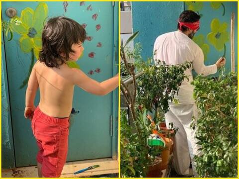 शनिवार को करीना कपूर खान ने इंस्टाग्राम पर कुछ तस्वीरें पोस्ट कीं, जिसमें उनके पति सैफ और बेटे तैमूर को दीवार पर पेंटिंग करते हुए देखा जा सकता है. एक चित्र में, सैफ को उनकी बालकनी में दीवार पर फूलों की पेंटिंग करते देखा जा सकता है और एक अन्य तस्वीर में, नन्हे तैमूर बालकनी की दीवारो को अपने पेंटिंग ब्रश की मदद से कलाकारी करते नजर आ रहे हैं.