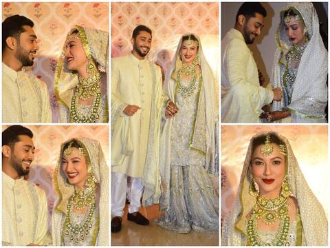 आपको बता दें, गौहर खान ने अपने रिसेप्शन पर मरून कलर का लहंगा पहना और निकाह के दौरान गोल्डन-क्रीम शरारा. गौहर खान ने अपने सभी आउटफिट के साथ काफी हैवी जूलरी भी पहनी हुई थीं. गौहर और जैद का निकाह मुंबई के आईटीसी ग्रैंड मराठा में हुआ है.