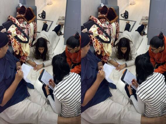 इस तस्वीर मे आप देख सकते हैं कि जाह्नवी कपूर जमीन पर उल्टा लेटी हुई हैं. और वो कुछ लिखती हुईं नजर आ रही हैं. क्रू के बाकी लोग भी उनके साथ हैं जो हाथों में स्क्रिप्ट लेकर बैठे हैं. इधर उधर सामान बिखरा हुआ है इस तस्वीर पर जाह्नवी ने लिखा है – Shoot is Super Hectic.