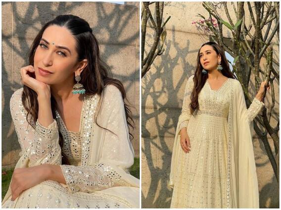 करिश्मा ने इस दौरान ऑफ व्हाइट कलर की अनारकली ड्रेस पहनी हुई थी. इस सिंपल से एथनिक ड्रेस में एक्ट्रेस कमाल की लग रही थी. करिश्मा की ये ग्लिटरी ड्रेस सबकों नजरों में घर कर गया.