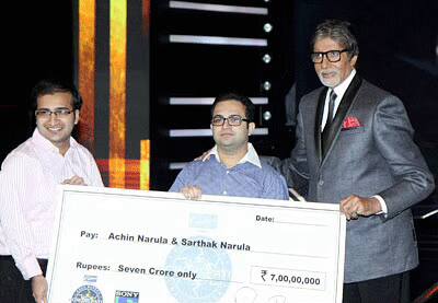साल 2014 में कौन बनेगा करोड़पति के आठवे सीज़न में दो भाईयों की जोड़ी इस खेल को खेलने के लिए पहुंची. नाम था अचिन नरुला और सार्थक नरुला(Achin and sarthak Narula). इन दोनों ने मिलकर ऐसा गेम खेला कि एक के बाद एक जवाब देते हुए ये 7 करोड़ के सवाल तक जा पहुंचे. हर कोई तब दांतों तले उंगलियां दबाए बैठा था. आखिरकार इस जोड़ी ने कमाल कर दिया और 7 करोड़ के सवाल का सही जवाब देकर ये रकम अपने नाम कर ली. साथ ही वो रिकॉर्ड भी जिसे आज तक कोई नहीं तोड़ पाया है.