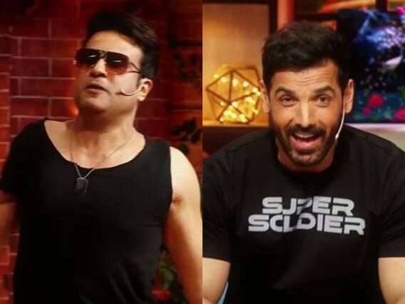टीवी के सबसे पॉपुलर 'द कपिल शर्मा शो' की लोकप्रियता सिर्फ देश नहीं विदेशों में भी देखने को मिलती है. कॉमेडी शो पर हर हफ्ते सेलिब्रिटीज और कलाकार पहुंचते हैं. कलाकार अपने किस्से कहानियों शेयर करते हैं और जमकर कॉमेडी का लुत्फ भी उठाते हैं. द कपिल शर्मा शो के अपकमिंग एपिसोड में एक्टर जॉन अब्राहम और रकुल प्रीत सिंह फिल्म अटैक के प्रमोशन के लिए पहुंचेंगे. हाल ही में कॉमेडी शो का नया प्रोमो सोशल मीडिया पर रिलीज किया गया है, जिसमें कॉमेडियन कृष्णा अभिषेक एक्टर अक्षय कुमार की नकल उतारते हुए नजर आ रहे हैं. इतना ही नहीं वीडियो में कृष्णा बताते हैं अक्षय कुमार की नकल उतारने में क्या दिक्कत उन्हें आती है. जिसे जानकर जॉन अब्राहम की हंसी छूट जाती है.