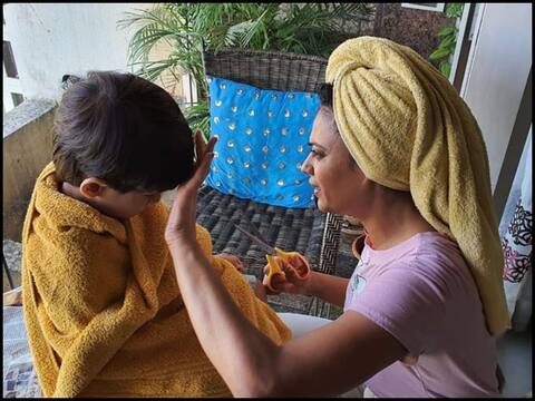 बता दें कि देशभर में लॉकडाउन के चलते इस वक्त बाल कटवाने के लिए सैलोन में जाना मुमकिन नहीं, ऐसे में रियांश के बाल बढ़ते देख श्वेता ने खुद ही 'बार्बर' बनने का फैसला किया. फोटो में श्वेता कैंची लेकर रियांश के बालों का काटती नजर आ रही हैं. मां-बेटे की ये फोटो उनके फैन्स को बेहद पसंद आ रही हैं. सोशल मीडिया पर लोग श्वेता के इस कदम की जमकर तारीफ कर रहे हैं. उनके इस फोटो पर हजारों की संख्या में लाइक्स आ चुके हैं.