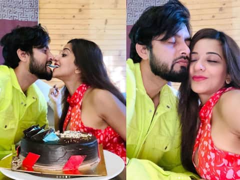 कभी केक काटते तो कभी एक दूसरे को केक खिलाते हुए ये जोड़ा बेहद रोमांटिक अंदाज में पोज करता दिखाई दिया. इस दौरान मोनालिसा हॉल्टर नेक रेड ड्रेस में बेहद ग्लैमरस दिखाई दे रही थीं.