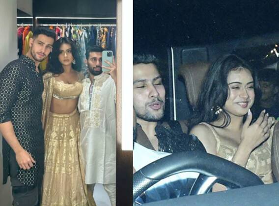 Nysa Devgan Photos: काजोल (Kajol) और अजय देवगन (Ajay Devgan) की बेटी न्यासा (Nysa Devgan) अपने ग्लैमरस अंदाज़ के चलते सुर्ख़ियों में रहती हैं. हाल ही में उन्हें भूमि पेडनेकर की दिवाली पार्टी में भी स्पॉट किया गया जहां गोल्डन कलर के लहंगे में वह बेहद खूबसूरत नज़र आईं. न्यासा की कार में बैठे हुए कुछ तस्वीरें सामने आई हैं जिनमें वह अपने दोस्तों के साथ नज़र आ रही हैं और हंस रही हैं. इसके अलावा एक अन्य तस्वीर में वह अपने दोस्त के साथ पोज़ देती नज़र आ रही हैं जिसमें गोल्डन लहंगे में उनका लुक शानदार लग रहा है.