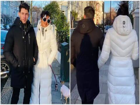 बॉलीवुड और हॉलीवुड एक्ट्रेस प्रियंका चोपड़ा और उनके पति निक जोनास क्रिसमस को सेलिब्रेट करते नज़र आ रहे हैं. इंग्लैंड में कोरोनो वायरस लॉकडाउन के कारण लंदन में प्रियंका चोपड़ा और उनके पति निक जोनास अपने कुत्ते डायना को टहलाते हुए नज़र आए. कुत्ते को घुमाते हुए साथ में दिखे प्रियंका चोपड़ा और निक जोनस ने बहुत प्यारी सी जैकेट पहनी हुई है. हाल ही में प्रियंका चोपड़ा ने अपने इंस्टाग्राम अकाउंट पर एक फोटो शेयर की है. फोटो सोशल मीडिया पर काफी वायरल हो रही है.