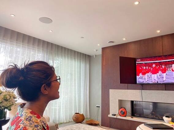 Priyanka Chopra watched the Olympic Games: आज से टोक्यो ओलंपिक (Tokyo Olympic) की शुरूआत हो गई है. वहीं इसकी शानदार ओपनिंग सेरेमनी प्रियंका चोपड़ा (Priyanka Chopra) ने भी अपने ड्रॉइंग रूम में बैठकर देखी. प्रियंका ने एक तस्वीर सोशल मीडिया पर शेयर की है जिसमें वो ड्रॉइंग रूम में बैठकर एक बड़े से टीवी पर ओलंपिक गेम्स 2021 (Olympic Games 2021) की ओपनिंग सेरेमनी का लुत्फ उठाती हुई दिखीं.