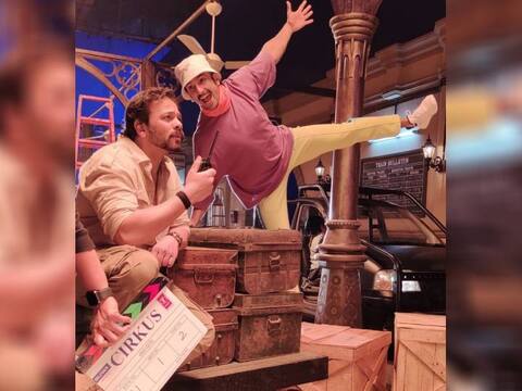 बॉलीवुड एक्टर रणवीर सिंह ने इंस्टाग्राम अपनी अपकमिंग फिल्म 'सर्कस' के सेट से एक तस्वीर शेयर की है. इस तस्वीर में वह रोहित शेट्टी हाथ वॉकी-टॉकी लेकर एक ठैले के सहारे झुककर खड़े हैं. वह फिल्म सर्कस के डायरेक्टर हैं. तस्वीर में देखा जा सकता है कि रणवीर सिंह फनी अंदाज में एक हाथ और एक पैर ऊपर उठाकर तिरछा खड़े हैं. वह रोहित शेट्टी की तरफ देखकर हंस रहे हैं, जबिक रोहित शेट्टी अपने काम में बिजी हैं.