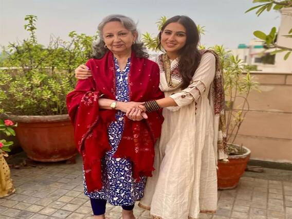 इन तस्वीरों में सारा अली खान कॉटन अनारकली सूट में नजर आ रही हैं. तो वहीं शर्मिला टैगोर ने ब्लू कलर का सूट पहना है. साथ ही उन्होंने इसके साथ लाल रंग की खूबसूरत शॉल कैरी की.
