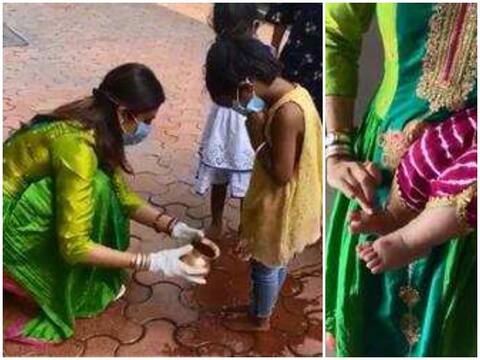 हैं. वीडियो क्लिप में शिल्पा अपने पति राज कुंद्रा के साथ लड़की को हलवा परोसते नजर आ रहे हैं. उन्होंने समिशा के पैरों की झलकियां भी पोस्ट कीं.उन्होंने लिखा, "आज अष्टमी के शुभ अवसर पर, हम अपनी देवी समिशा के आशीर्वाद से बहुत ही सौभाग्यशाली रहे, समिशा की यह पहली नवरात्रि है, इसलिए 8 छोटी लड़कियों के साथ कन्या पूजन किया और उनका सभी सावधानियों के साथ स्वागत किया."