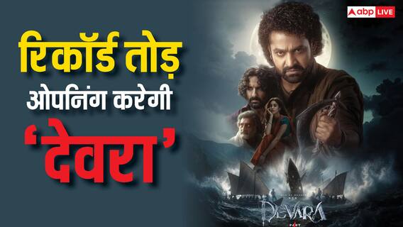 Devara Box Office Day 1 Prediction: जूनियर एनटीआर की फिल्म 'देवरा- पार्ट 1' इस साल की मोस्ट अवेटेड फिल्मों में से एक हैं. लंबे इंतजार के बाद फिल्म आखिरकार 27 सितंबर 2024 को सिनेमाघरों में दस्तक देने के लिए तैयार है. कहा जा रहा है कि जूनियर एनटीआर की ये फिल्म बॉक्स ऑफिस पर तूफानी कलेक्शन करेगी और रिकॉर्ड बनाएगी. 'देवरा- पार्ट 1' की एडवांस बुकिंग शुरू हो गई है जिसमें फिल्म दमदार कमाई कर रही है.