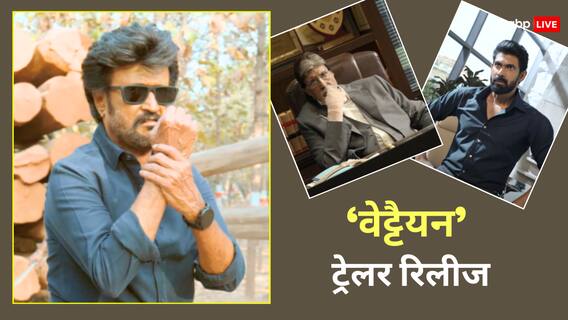 Vettaiyan Trailer Out: रजनीकांत की फिल्म 'वेट्टैयन' का दर्शकों को लंबे समय से इंतजार है. फिल्म 10 अक्टूबर को सिनेमाघरों में दस्तक देने के लिए तैयार है. इससे पहले 2 अक्टूबर को फिल्म का ट्रेलर रिलीज हो गया है. 'वेट्टैयन' का ट्रेलर एक्शन से भरपूर है जिसमें अमिताभ बच्चन का भी शानदार लुक नजर आया है. इस फिल्म के जरिए अमिताभ बच्चन और रजनीकांत 33 साल बाद फिर से एक साथ स्क्रीन पर दिखाई देंगे.