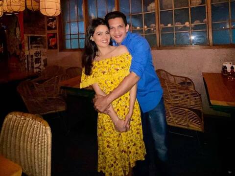 आदित्य नारायण ने ब्लू कलर की शर्ट और जींस पहनी हुई है और श्वेता को पीछे से बाहों में भर रखा हैं, जबकि श्वेता ने फूलों की छाप वाला पीले रंग का आउटफिट पहना हुआ है. दोनों के चेहरे पर मुस्कान है और दोनों काफी खुश दिखाई दे रहे हैं.